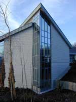 Brandschutzfassade, Leichtmetallfenster und -türen, Lichtband, Geländer, Stahlpergolen und Überdächer