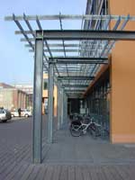 Stahlvordachkonstruktion mit Glas- und Aluminium-Wellblecheindeckung